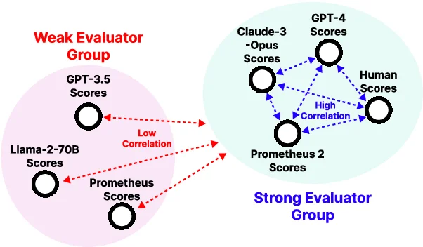 On the other hand, using open models for evaluation is an active research area, but their practical use is often limited. They typically do not correlate well with human judgments and lack flexibility (for more details, see the Prometheus 2 paper).